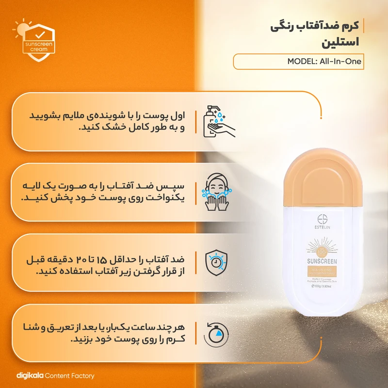 برای مقایسه سطح محافظت، میتوانید به Estelin All‑in‑One Multi‑Defense Tinted SPF 100 نگاه کنید: