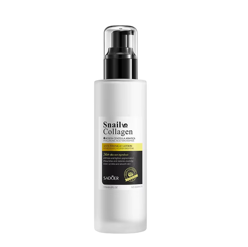 لوسیون صورت ضد چروک و سفید کننده کلاژن و حلزون Sadoer ۱۱۵ میلیلیتر | فرمول قوی برای پوست جوان و روشن