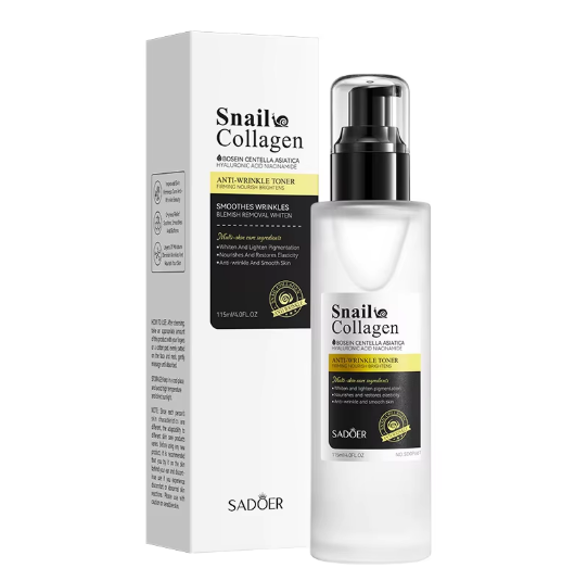 تونر صورت ضد چروک و سفید کننده کلاژن و حلزون سادور (Sadoer Snail Collagen Whitening Toner) با حجم ۱۱۵ میلیلیتر، یکی از محصولات محبوب و مؤثر در روتین مراقبت پوستی است که با ترکیبی از کلاژن، عصاره ترشح حلزون، و ترکیبات روشنکننده طبیعی، پوست را شاداب، درخشان و جوان میکند.
